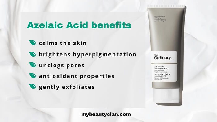 Azelaic acid offers benefits such as reducing redness, clearing blemishes, and improving skin texture, making it a versatile choice for many skin types.